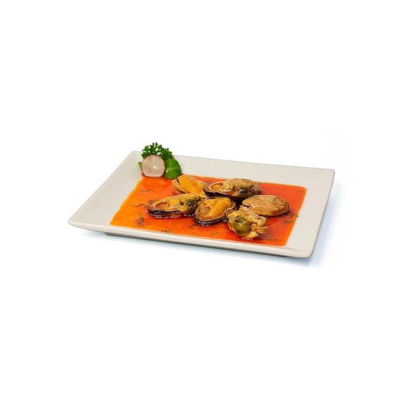 Cocido y frito en aceite de oliva. Se le extrae el biso manualmente y se empacan uno a uno. Acompañado de un escabeche único elaborado con ingredientes totalmente naturales y con aceite de oliva.